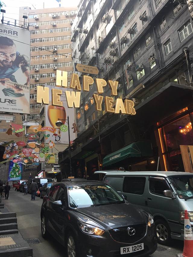 无人不知的兰桂坊(Lan Kwai Fong),我却是第一次来看它。度娘说它位于香港中环区的一条呈L型的上坡小径,名叫“兰桂坊”(取其兰桂腾芳之意)。广义而言是指与德己立街、威灵顿街、云咸街、安里、仁寿里及荣华里构成的一个聚集大小酒吧与餐馆的中高档消费区,深受年轻一代、外籍人士及游客的欢迎,是香港的特色旅游景点之一。在我看来,这是一条酒吧街,傍晚时分,这里开始慢慢热闹起来,见到的客人最多的是外国朋友。