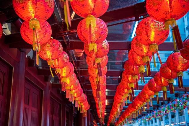 悬挂的红灯笼处处散发着浓浓的年味。