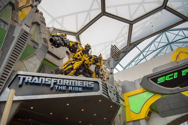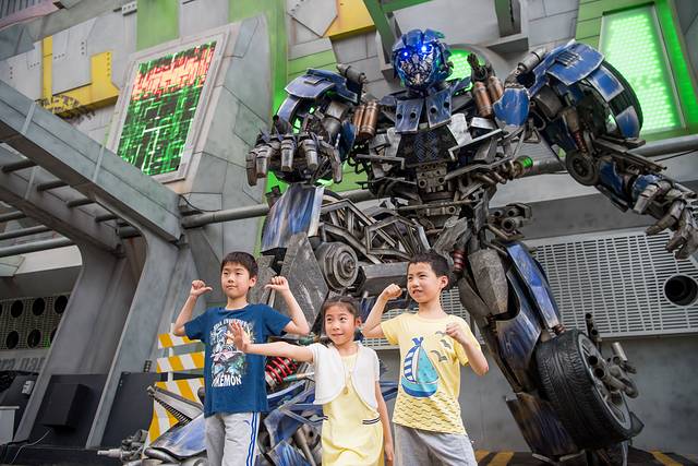 ▲环球影城的招牌项目变形金刚,与汽车人合影。
