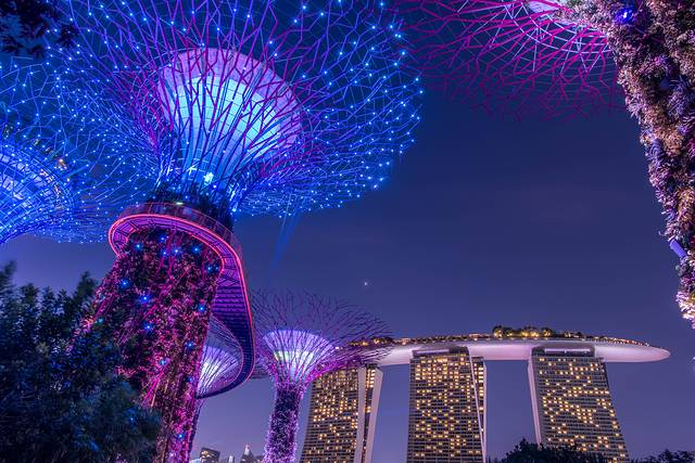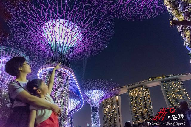 ▲滨海湾花园超级树点缀夜空。