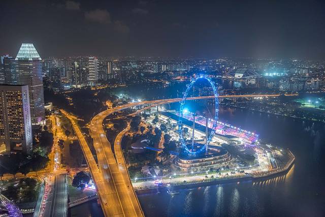 俯瞰整座Marina Bay,新加坡夜景灯光最灿烂的地区。