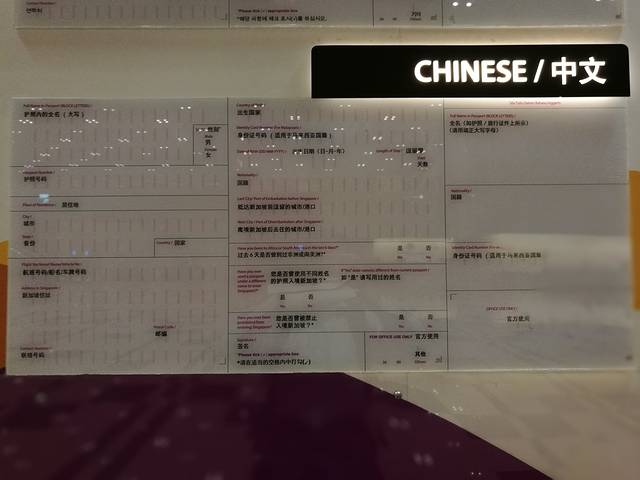 樟宜机场入境检查填报样表。照着填就ok了。个人感觉部分信息就是个过程,填满就行。