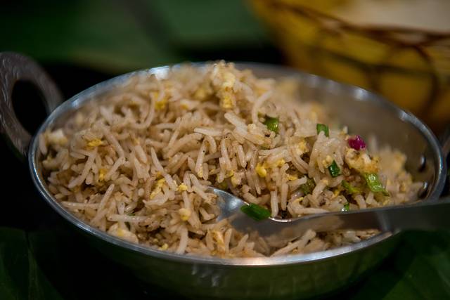 印度炒饭,用的东南亚特有的香米炒的,加入鸡蛋、葱一起炒,非常可口。