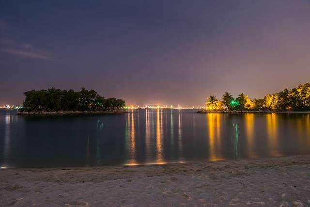 滨海湾的灯光如繁星点点。