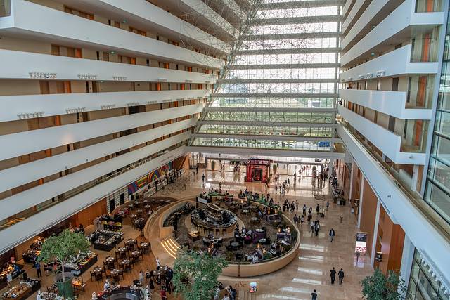 酒店A大堂,作为滨海湾的标志性建筑和旅游景点,加上赌场和购物商城,