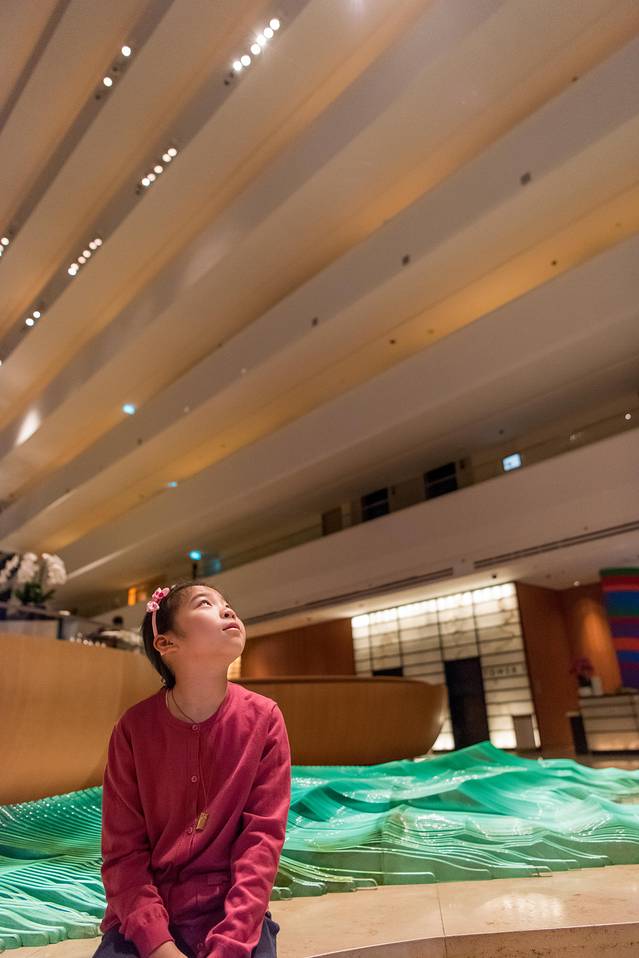 途径瑞吉公园酒店,酒店北侧长廊的灯带非常有延伸感。