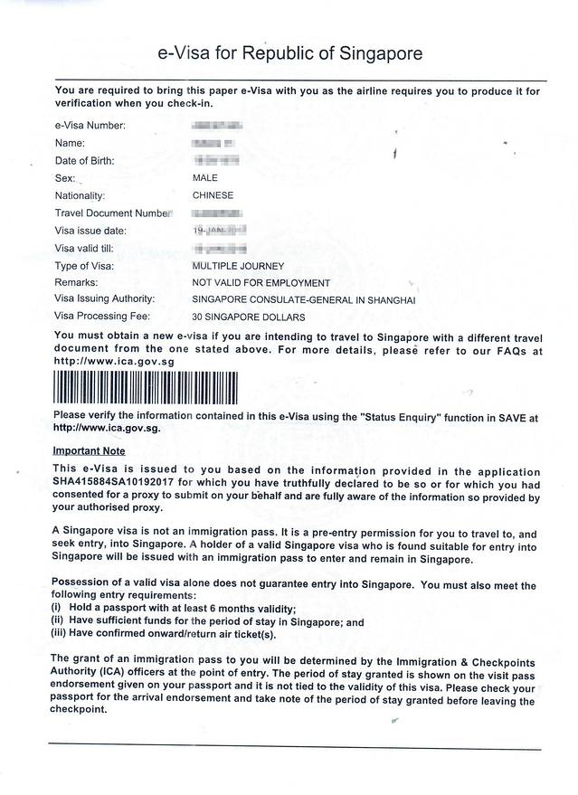新加坡签证简单迅速,中国公民申请新加坡个人旅游电子签证入境次数多次,有效期35天到1年不等,审核时间为5到7个工作日,通过后预留电子邮箱会收到PDF格式电子签证,自行打印签证页并携带有效护照。