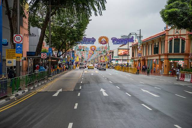 小印度的主干道并不像支路那样到处设摊,仍保持新加坡道路的一贯整齐干净。