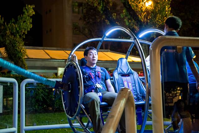 著名的G-MAX逆转蹦极跳,刚被绑上去的兄弟紧张的闭起眼睛,很同情这位兄弟。