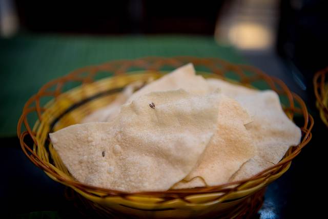 餐桌上铺一层蕉叶,刚开始以为是桌布,后来才发现印度人是当“碗”用的,饭直接放在叶子上用手抓(右手)。