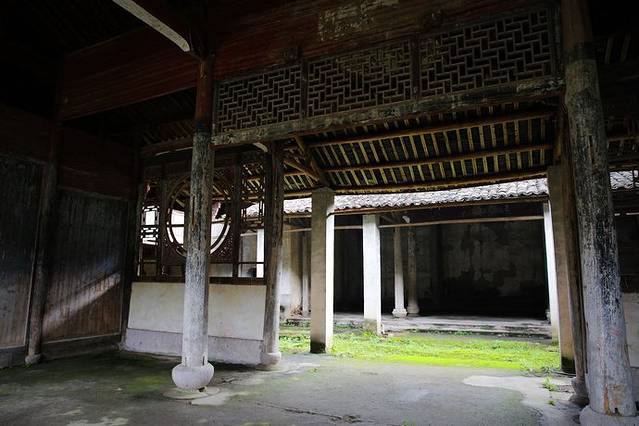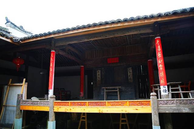 祠堂分为上中下三进厅堂,上堂是祭祀祖先的神圣场所,中堂是族人聚众议事地点,下堂是搭台唱戏的公共场地。