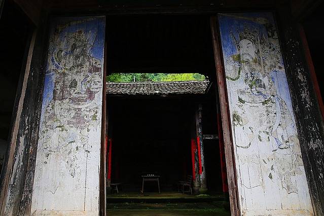 宗祠的大门上绘着流金溢彩的门神,画师将秦琼和尉迟恭两位武门神画得栩栩如生,推开大门的那一瞬间,似乎也能将他们从画面中推下来。
