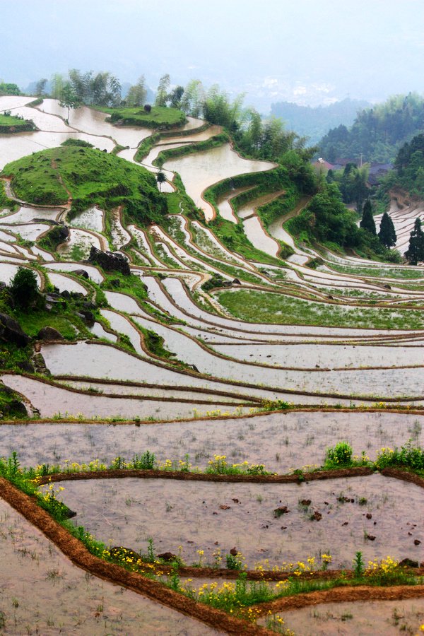 梯田里的居民,淡泊、安详!春漫田畴,阡陌交通、鸡犬相闻,陶渊明笔下的桃花源也不过如此。