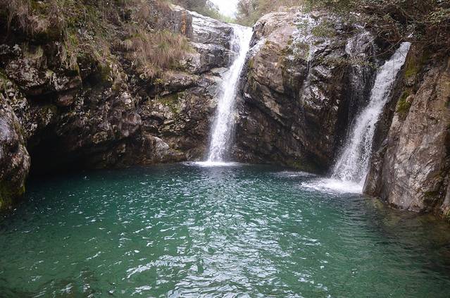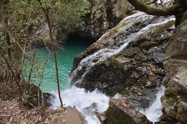 不需要走几步,就能看到一条清涧汩汩的流出,池中的水是墨绿色的