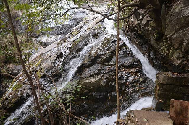 周六一早8点半出发,到达九龙瀑附近的一家较新的宾馆(忘了叫什么宾馆了,很新,五星级标准,400多一晚),将行李放下,驱车赶往九龙瀑,这个季节,人不多不少。