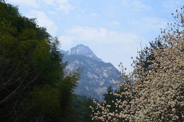从山下拾级而上,看着满山的“桃花”(应该是白玉兰),感觉非常像在日本富士山脚下那个小村庄眺望富士山的感觉。