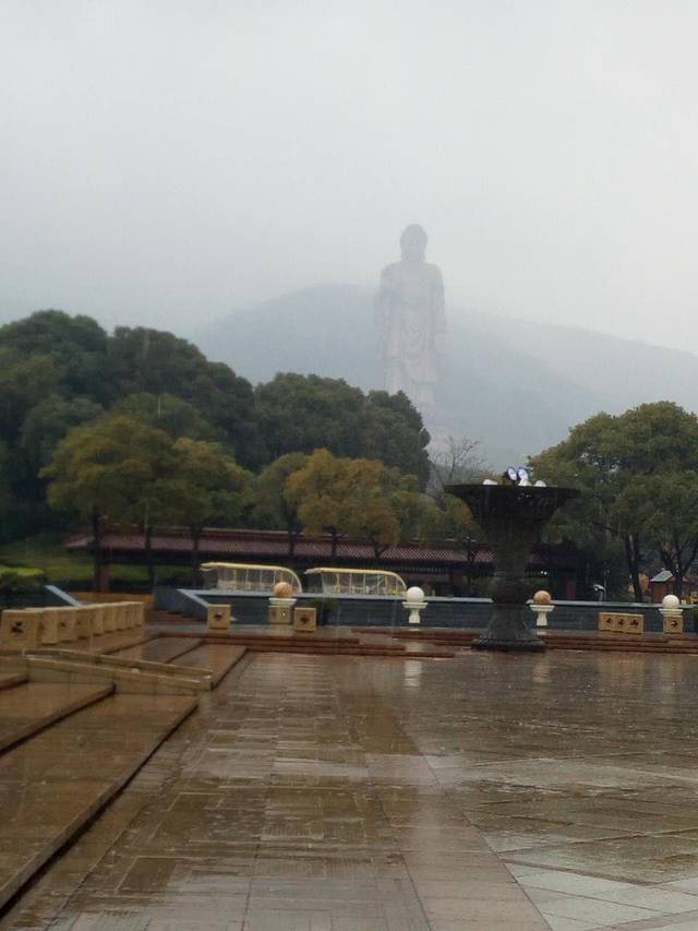3月19号早上6点多起床,去吃早餐,差不多8点多出门。去火车站集合准备去灵山大佛,提前一天在“去哪儿网”上买的团体票,图个便宜,可是便宜就得费时间啊,从酒店坐1号线到火车站也就两个站,火车站出来要走二十分钟左右才能到指定地点集合,到了又要等人齐才能走,然后天又下雨,抱着随遇而安的心情,踏上今天的旅途,从火车站到灵山大佛大约三十多公里,所以差不多11点才到,去灵山定要烧香的,导游说灵山的请香很贵,最少也要两百多,所以带我们到一处小庙买了一套全家福79根香,两根红烛,一共99元,还送一个开了光的小佛手,在景区卖15元。我没有看到小庙,只看到一位和尚。
