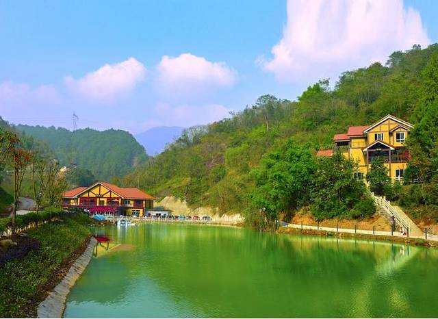 一走进景区,就可以看到心月湖。恰似一弯新月,心月湖在蓝天与大地之间彰显独属于它的美丽。湖水清澈,水中可见鱼儿游荡,景区有钓鱼设施可租借,是重庆室内难道一见的钓鱼圣地。