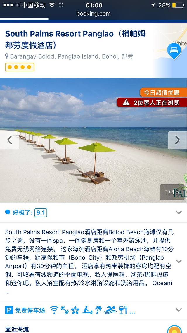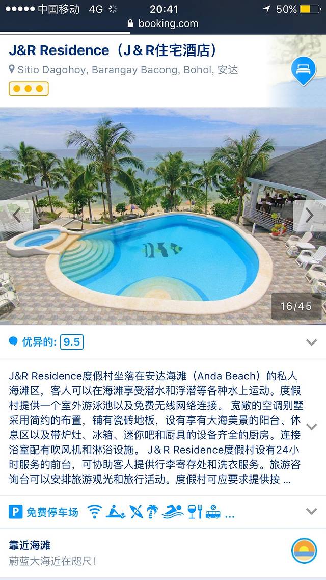 在距离100多公里以外的Anda(薄荷本岛)定了一家,因为不是旅游的地方也查不到别人写的攻略,只是听说那里有白沙滩,说到底,我们就是冲着那家评分超高的酒店去的