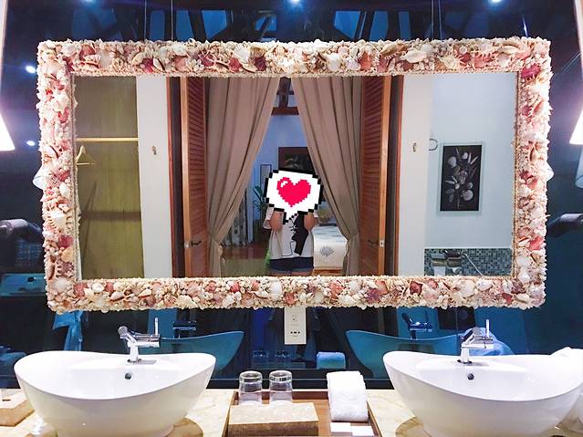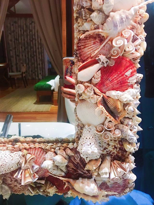 我最爱的是房间里的镜子!整个边框都是由各式各样的贝壳拼成的,绚丽极了