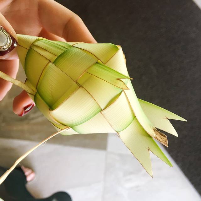 刚进去,酒店里的姑娘就热情地送上了冰毛巾和清凉解渴的青瓜椰子汁(很特别的味道),还为我们挂上了用椰子叶编织的小鱼,好温暖