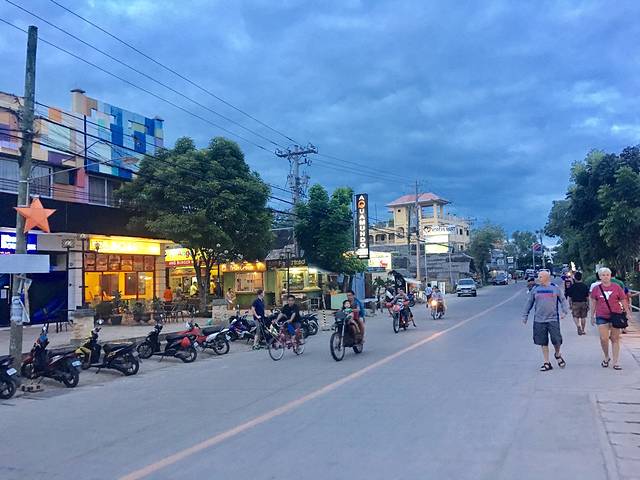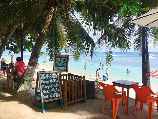 Alona Beach 上很热闹,都是一家家小店,很多餐厅和小卖店,可以在这里选择一家环境不错的餐厅吃一顿午餐,然后和朋友一起看海聊天,还是很浪漫的