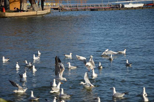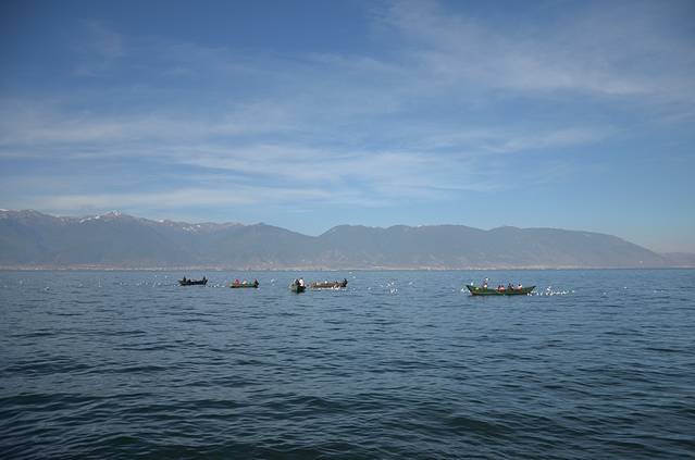 早上起来,匆匆吃过早饭,旅馆老板带我们穿过胡同来到当地游客集散地,由大巴一辆一辆的接送着环湖一日游。