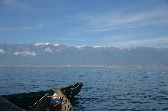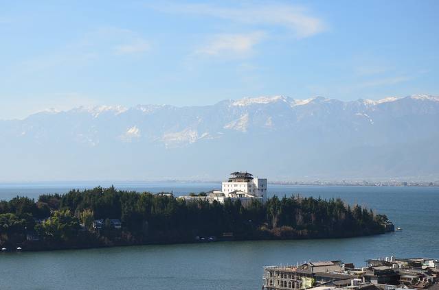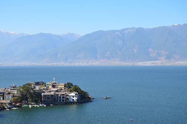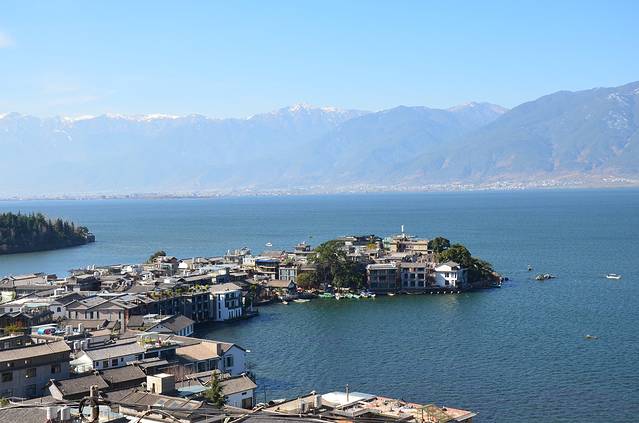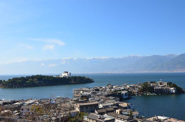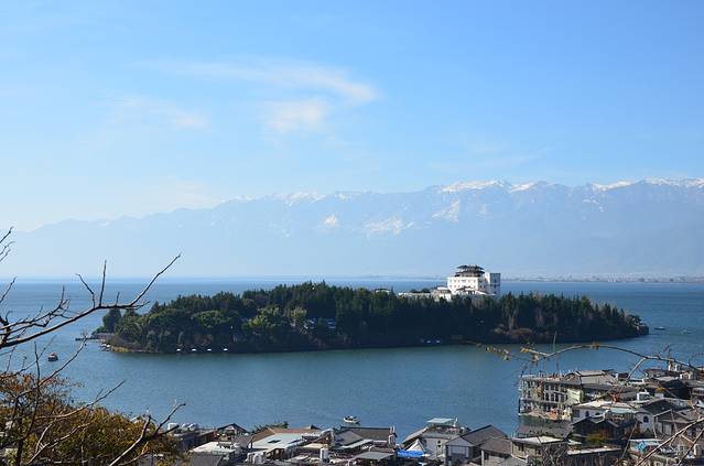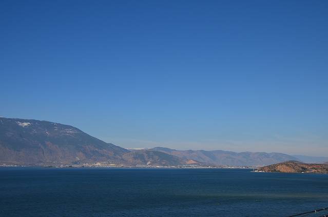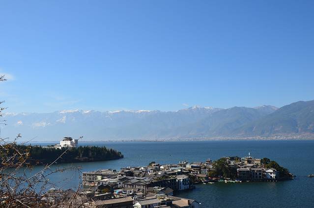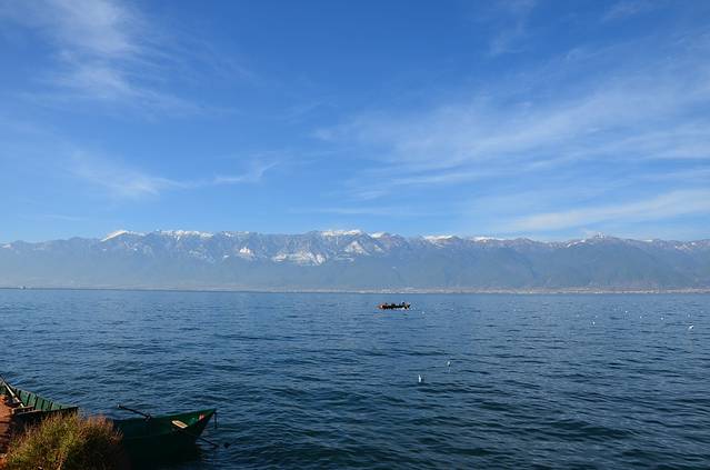 天蓝的简直不成个样子,加上宽阔的洱海,皑皑白雪的苍山,美不胜收。导游告诉我们,大理世代居住在苍山脚下,与世无争,中间还有几百年的大理国建国史,中途只有一次,被蒙古兵从苍山一侧爬过来入侵了。