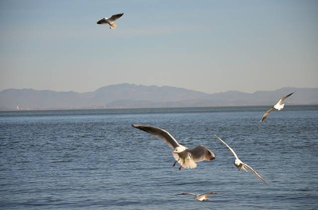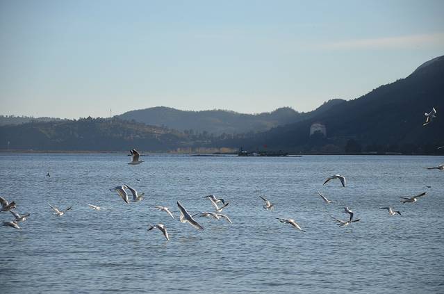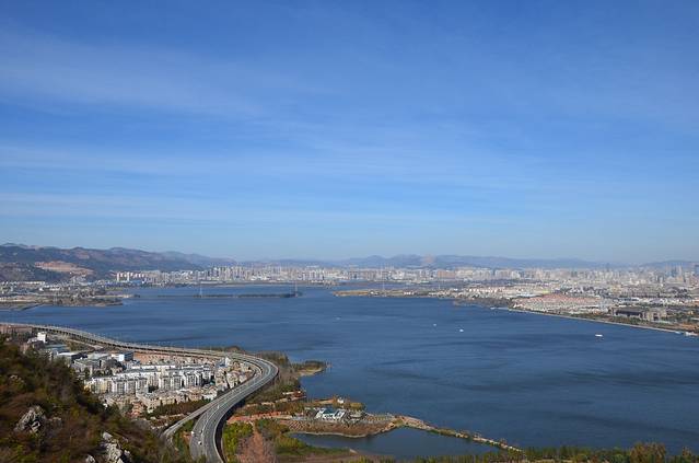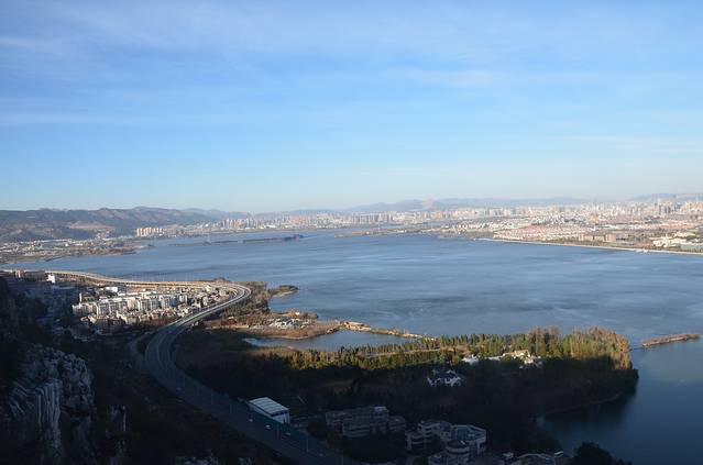 滇池水域,群山环抱,河流纵横,良田万顷,人称“高原江南”。在池的周围,有渔村和风帆点缀的观音山风景区;有花光树影的白鱼口空谷园;有绵亘数里,水净沙明的海埂湖滨浴场和秀美隽逸的大观楼公园等等,都是十分惬意的游览之地,特别是在绿波荡漾的彼岸,巍峨雄壮的西山之巅,水浮云掩。那湖泊的秀丽与大海般玄境便呈现在你的眼前。滇池既有湖泊的秀丽,亦有大海的气魄。