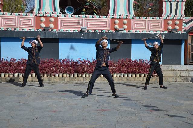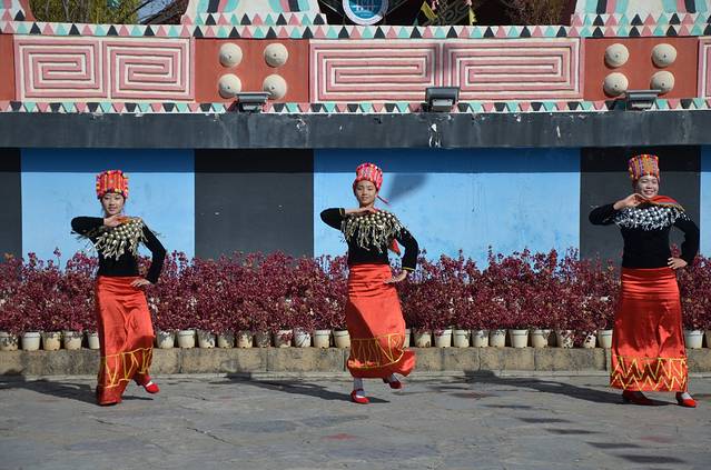各个民族都有象征自己民族的村寨,村寨里有姑娘小伙的表演,每天定时表演多长,这个在门票上都有时间说明。