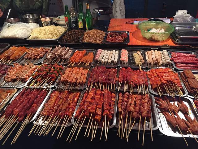刚到昆明的第一天是晚上,我们下了飞机匆匆赶到火车站附近的一家汉庭住下,才发现没吃晚饭,有些饿了,下楼发现有很多路边大排档,烧烤店里有各式的烧烤,还有烤虫子。