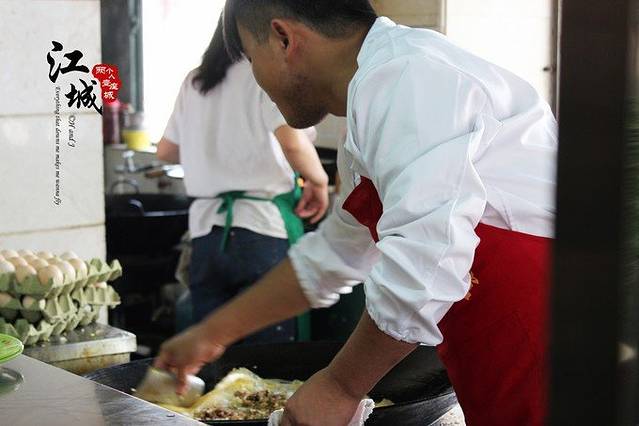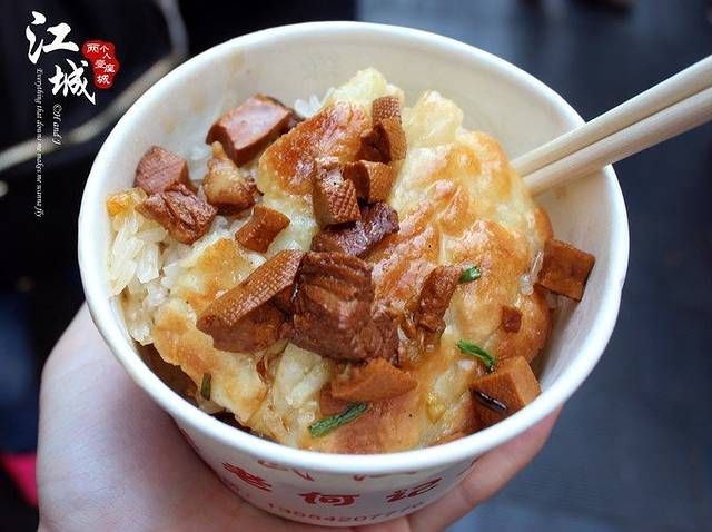 Joy着了豆皮的魔,看到豆皮当然要买上一份的。于是我们就一人捧着一份小吃,在摊旁边站着一遍吃着一遍看老何记的老板娘做豆皮,Joy看的仔细,大概当时心里下了回家自己做的决心吧。。