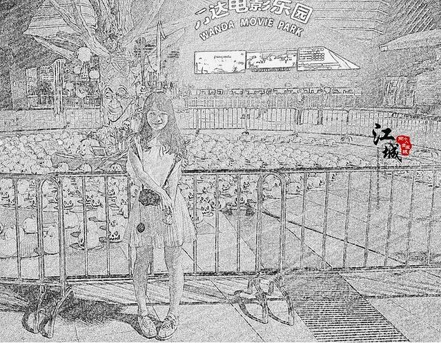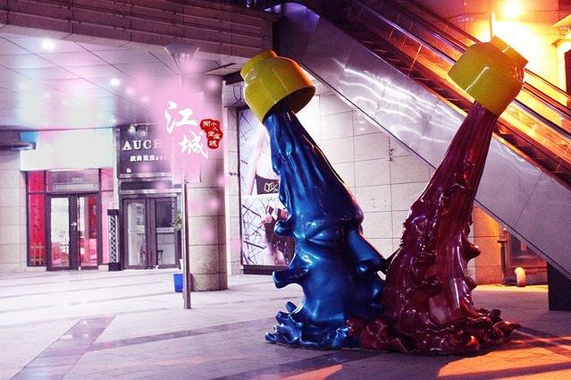 晚上没有注意到,在宝丽金中央荣耀和万达影城之间的广场上有很多很有趣的雕塑↓