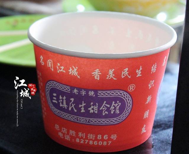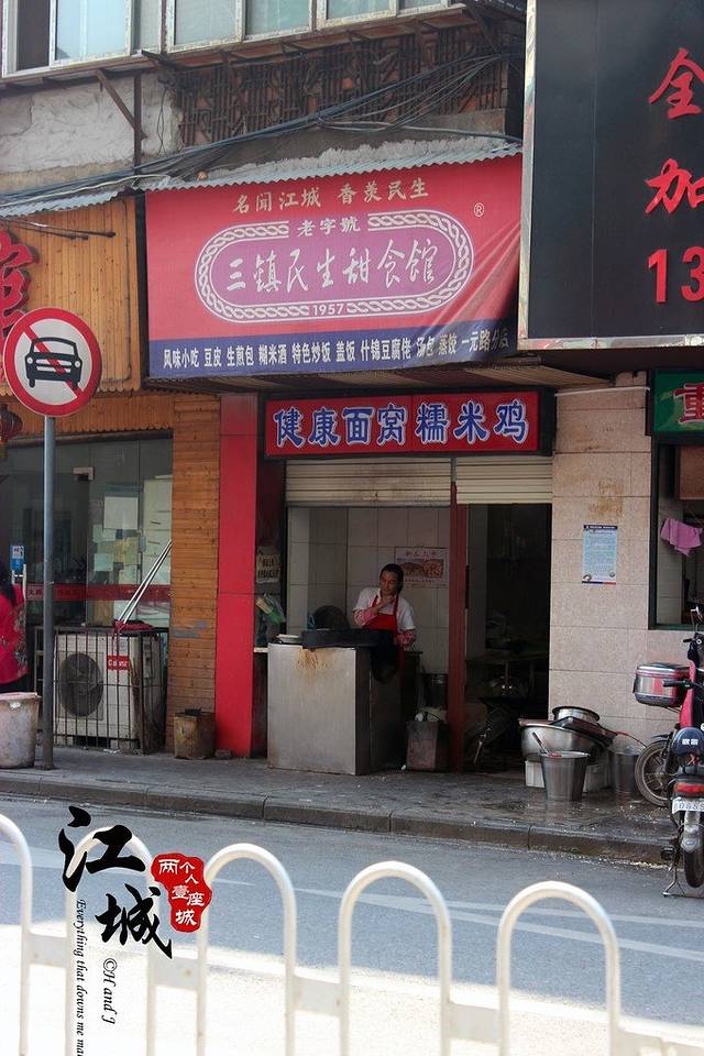 对着地图找啊找,终于找到了在胜利街和合作路交叉口处的三镇民生甜食馆。因为招牌没有想象的那么明显,我俩还差点走过了。