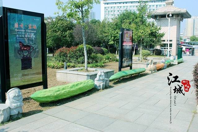 园内的供游客休息的座位很新颖,各种蔬菜水果的造型,黄瓜扁豆胡萝卜秋葵,萌一脸!!旁边还有各种小矮人啊招财猫的雕像
