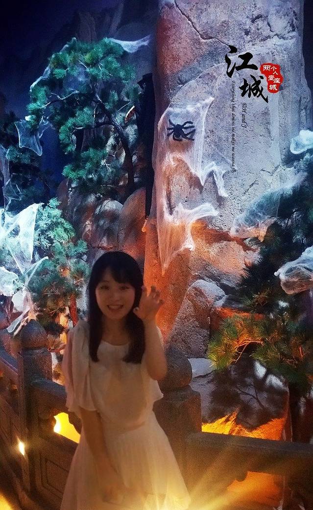 从入口进入,就是各种假山和LED屏(应该是吧)做的瀑布。还特意为了万圣节气氛,放上了蜘蛛和蛛网。。。从入口一直到最后进入到房间前的这段路,总觉得气氛恐怖。。。是因为夜场还是因为万圣节吗。。。还是一直是这个调调呢