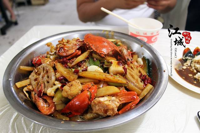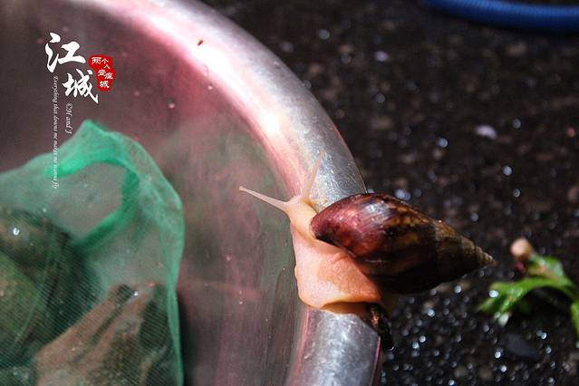 这家店所在的路貌似是个小吃街,周围也有很多家店,烧烤、香辣虾都有。还看到有炒蜗牛(应该是炒吧)的,店外面摆着两盆大个儿的蜗牛,慢慢悠悠的爬。