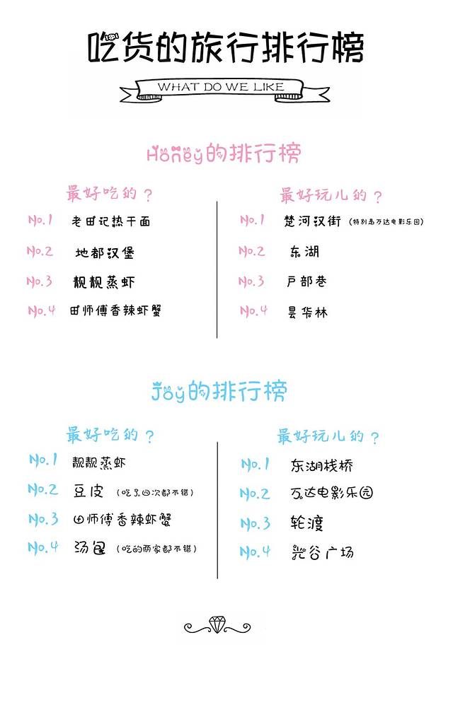 在这儿附上一张我们俩总结的这次旅行好吃好玩的排行榜。是一个吃货属性女生和半吃货属性男生的诚意推荐~