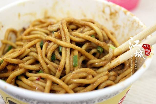 这家热干面辣椒香葱都是可以自己加的,这点很喜欢。味道还是很不错的,就是吃到最后有那么一点点腻。但是吃完还是感觉回味很香的。