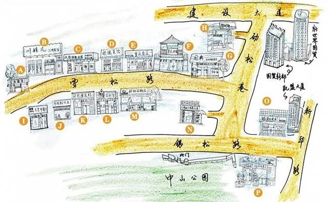 吃好好之后 步伐就没有那么急切啦 , 慢慢走回地铁站,路上仔细看了下雪松路两边的食肆,很多都是很有来头的感觉,这儿附上一张我在网上找到的一张雪松路手绘美食地图,虽然是几年前的图,但大部分店现在仍然人气火爆。