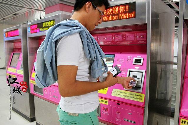 终于脱离行李能自由活动的俩人儿于是火速前往地铁站。武汉2号线代表色是粉色,连自助售票机都是粉色,公主心满满呢~