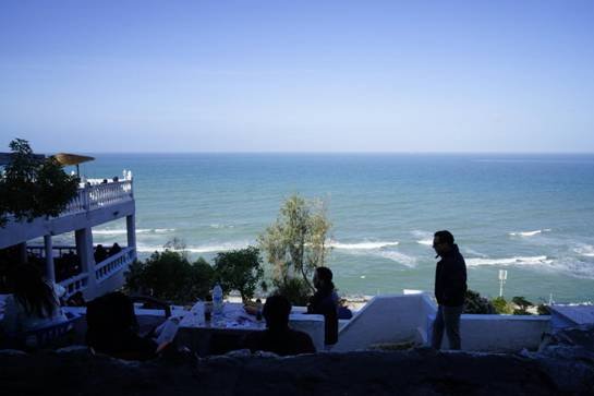 第二个地方是一家直面大海的咖啡厅,Cafe Hafa。虽然它是一间咖啡厅,但是这间咖啡是不卖咖啡的哟!可以点一杯薄荷茶,坐在露台上慢慢喝,感受海风,感受浩瀚无垠的大海!这个地方是很多人都推荐的,甚至有说过一句话“没来过Cafe Hafa,就没到过丹吉尔”,这显然是对这间咖啡厅的高度评价!强烈建议去这家咖啡厅坐一坐,从另外一个角度看看丹吉尔的海,感受不一样的美!