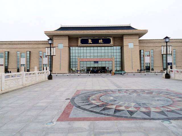 吃完中饭回去整理行李,赶去火车站。。。敦煌站从外面看去很庄严。。。
