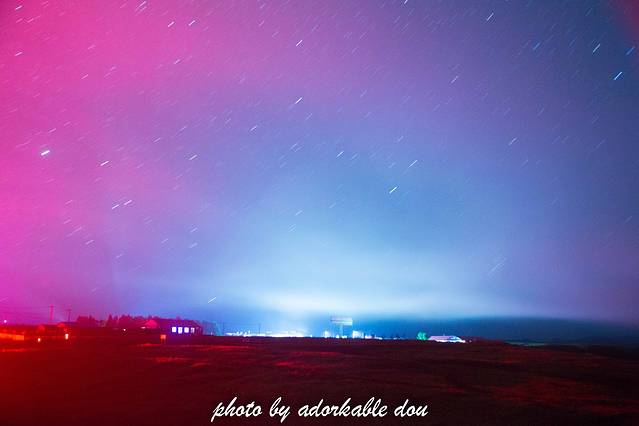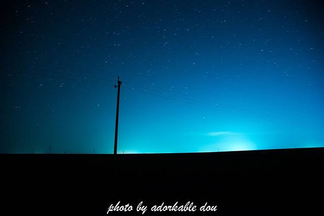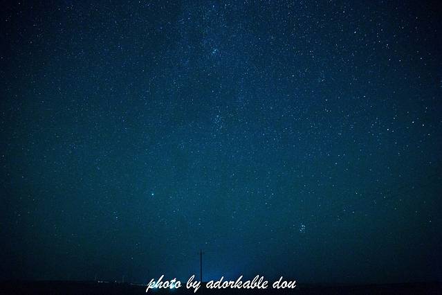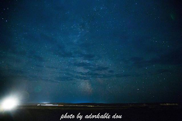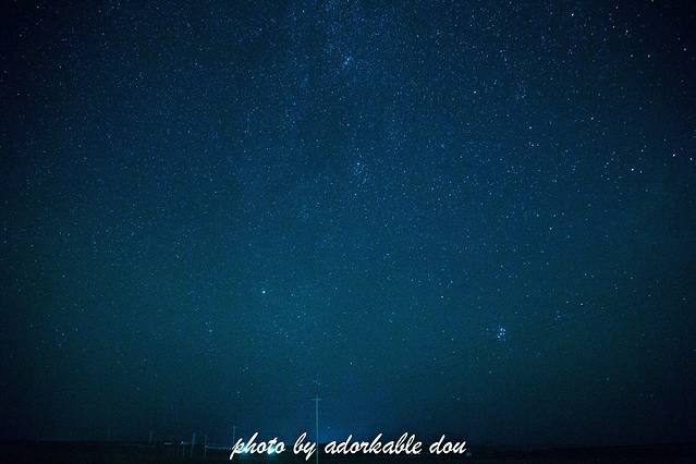 吃完晚饭,把小伙伴们送回宾馆, 然后开车来到了之前拍日落的地方来拍星星~