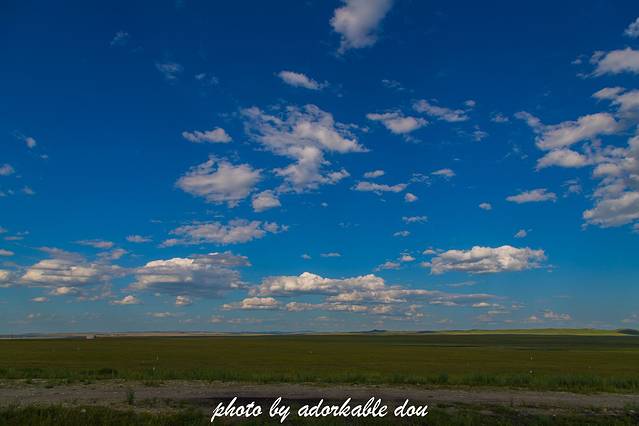 进入内蒙之后,天更蓝了,向远望全是一望无际的大草原~