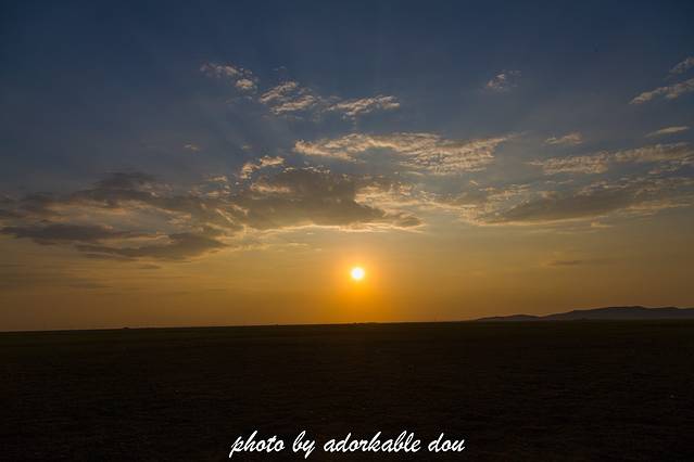 从满洲里沿着G301去呼伦贝尔,下午17:30到达陈巴尔虎旗附近,找了个草原,同伴就去骑马去了,我就在草原上静静的等待日落~