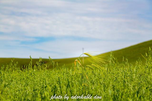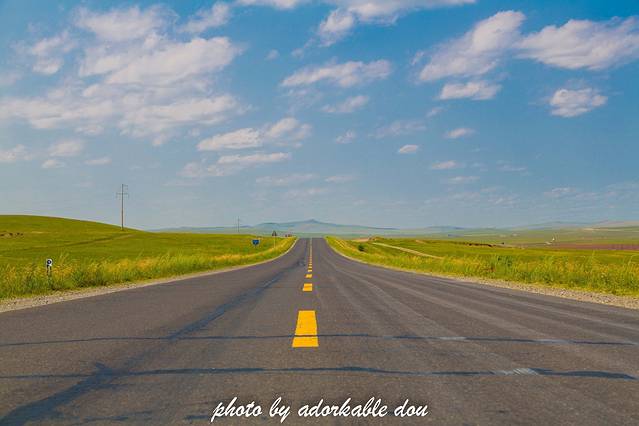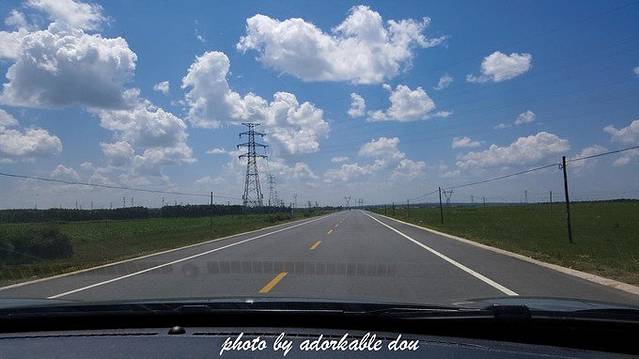 出了高速左转就是草原天路东线,蓝天白云的景色很迷人
