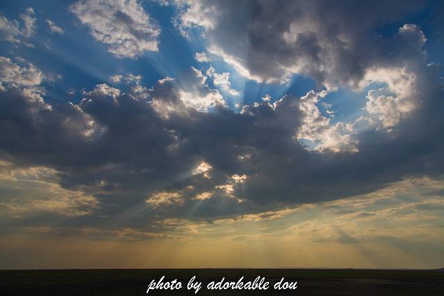 云把阳光遮住,所以在草原上就行程了千奇百怪的影子~
