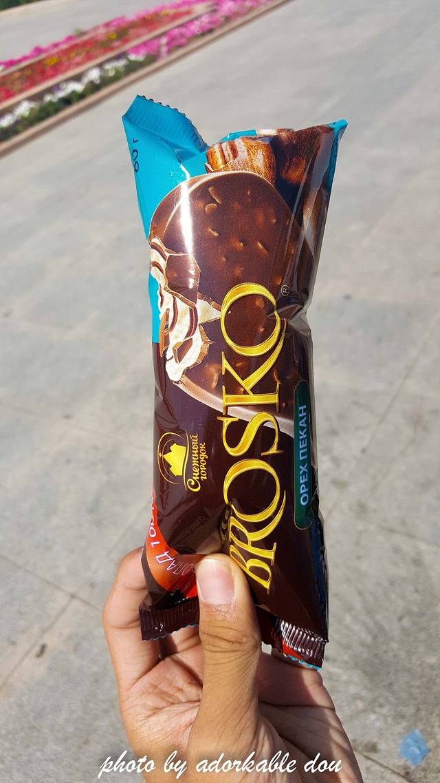 出来之后,实在太热了,找了个小卖部,买了根俄罗斯的冰棍~