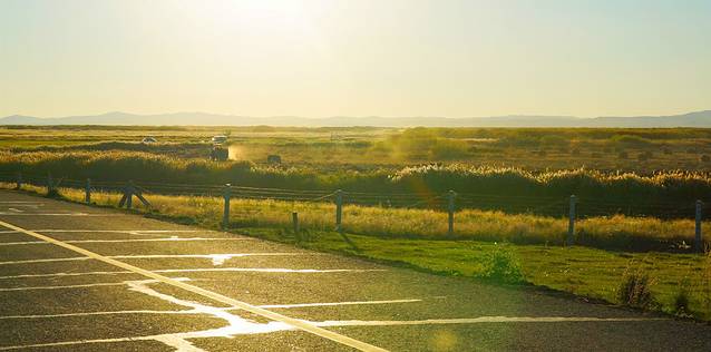 近处是蜿蜒的水脉,远处是黄绿相间的草包。满眼都是流动的线条,明媚的色彩。